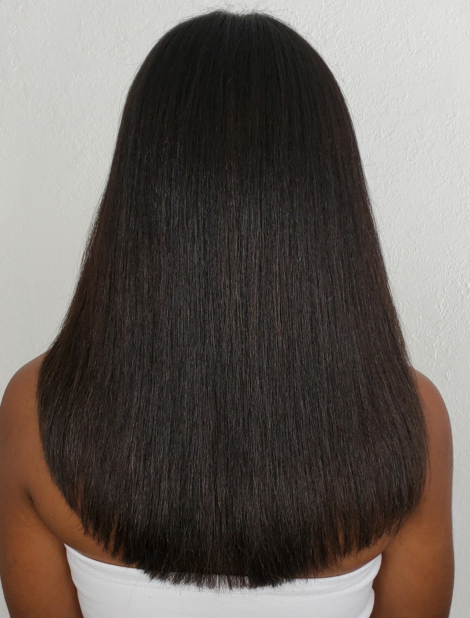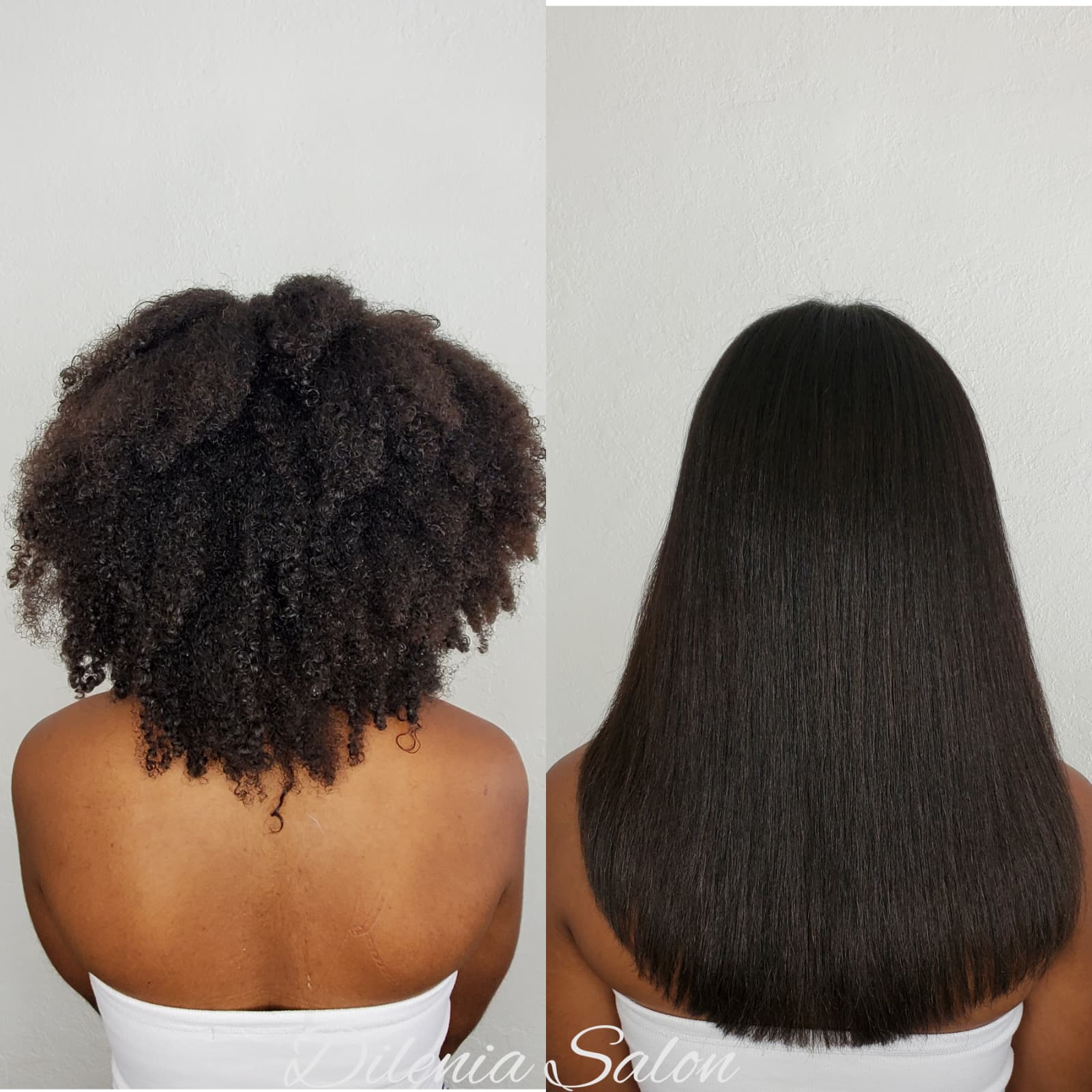 Our relaxer treatment provides permanent hair straightening, includes a pH balancing treatment, and an express deep treatment to restore smoothness and shine.